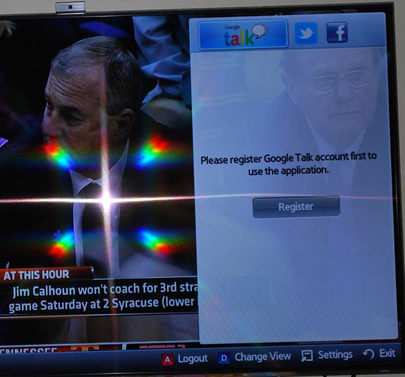 Current I am having an issue signing into my Google Talk app on my Samsung UN55D8000 tv. Below are pictures taking of what I am trying and the result.